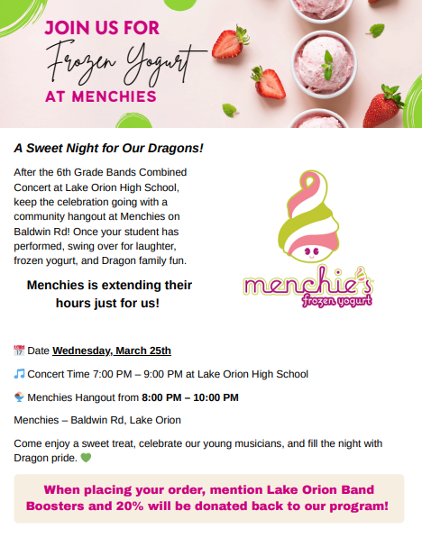 Athletic Concessions vouchers beginning on December 1st should be saved and sent to Accounts@lodragonbands.org in July to be used towards Marching Band fees.